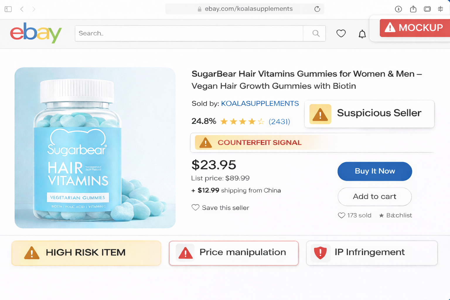 We monitor all major marketplaces, social platforms, and domains to protect your brand. Including: Amazon, eBay, Etsy, Walmart, Instagram, Facebook, Twitter/X, TikTok, YouTube, LinkedIn, and more — plus comprehensive domain surveillance.